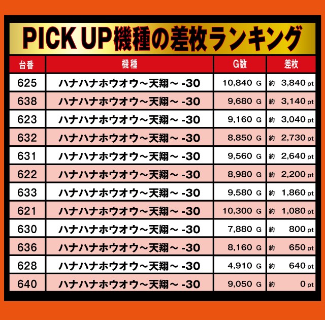 30パイPICK UP機種の差枚ランキング