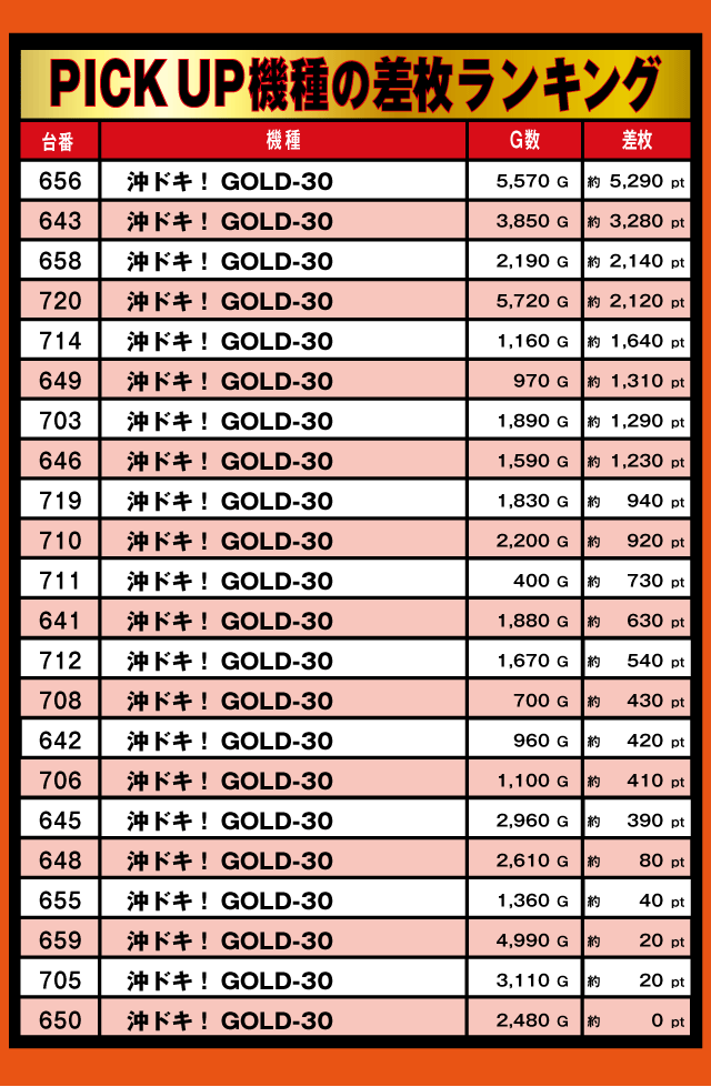 30パイPICK UP機種の差枚ランキング