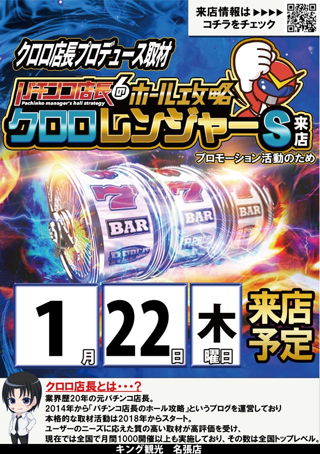 1月22日(木)朝9時開店★クロロレンジャーS来店★