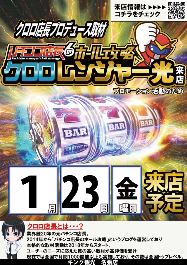 1月23日(金)朝9時開店★クロロレンジャー光来店★