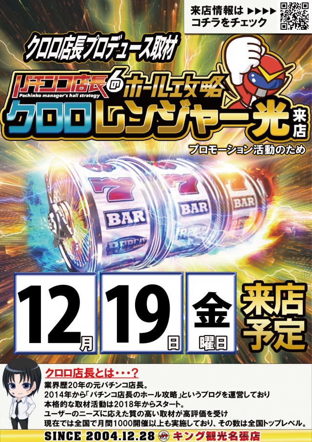12月19日(金)朝9時開店★クロロレンジャー光 来店