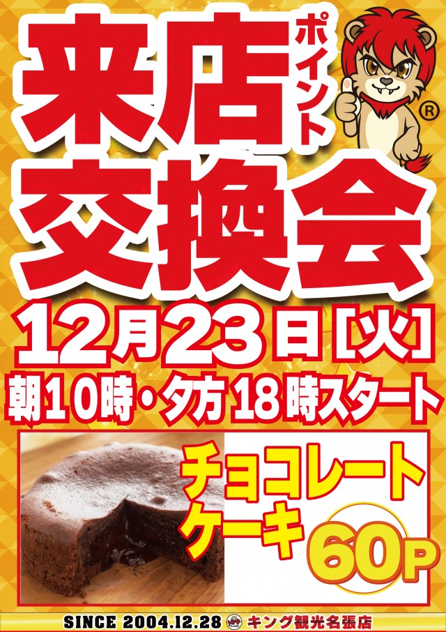 12月23日(火)朝9時開店★来店ポイント交換会★