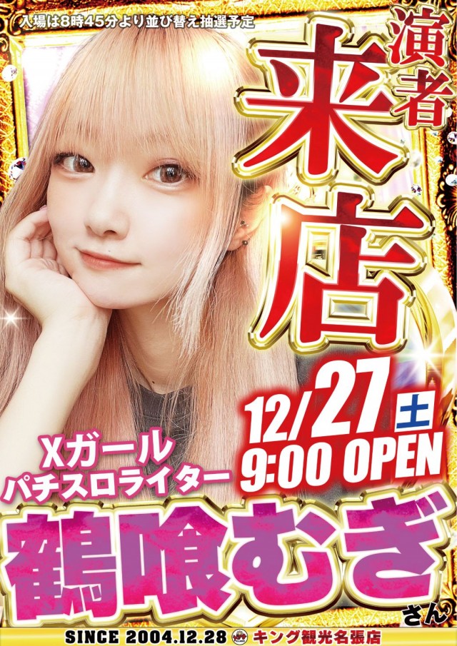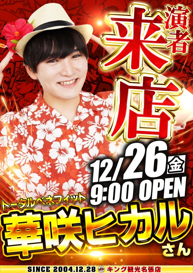 12月26日(金)朝9時開店★華咲ヒカルさん来店★新台入替