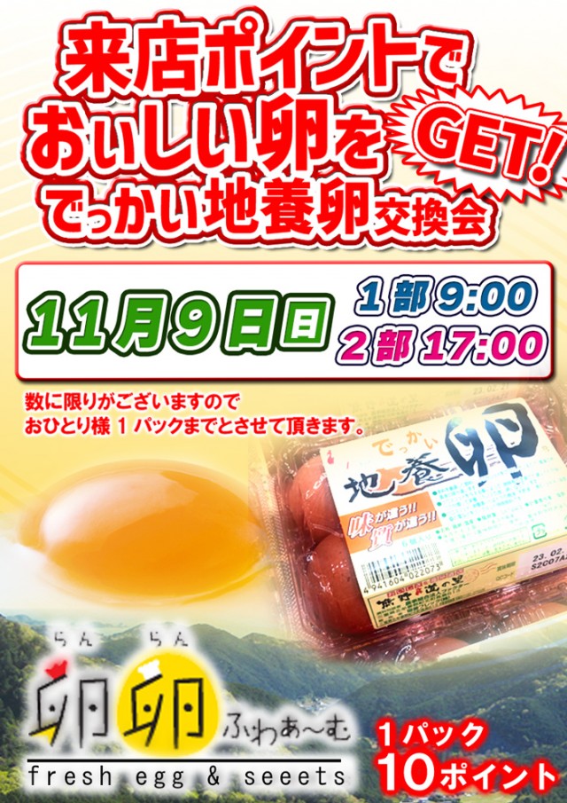 11月2日(日)朝9時開店!販売会&来店ポイント交換会!!