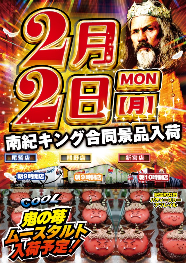 2月1日(日)朝9時開店!南紀キング合同!今!一つになる時!