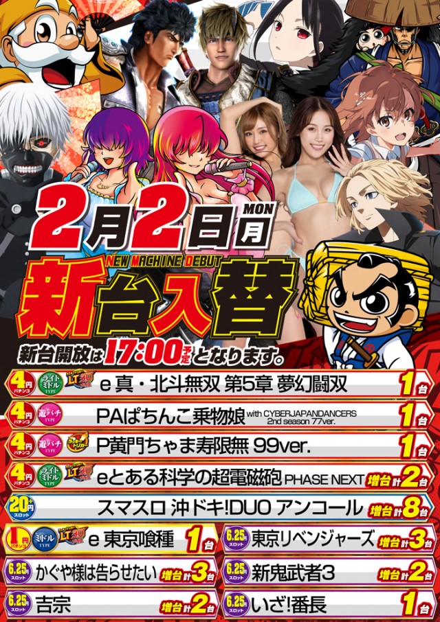 2月2日(月)朝9時開店!新台入替!!