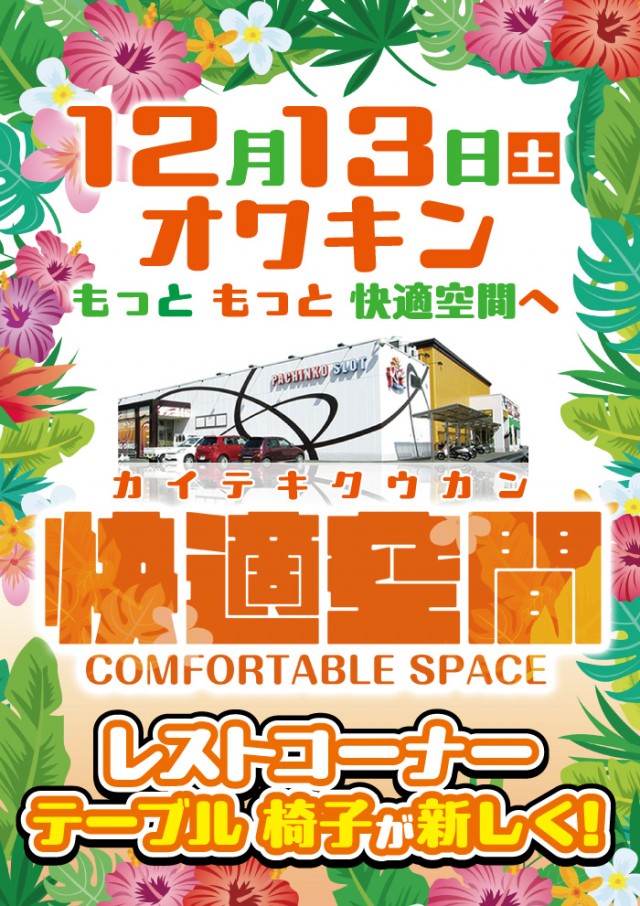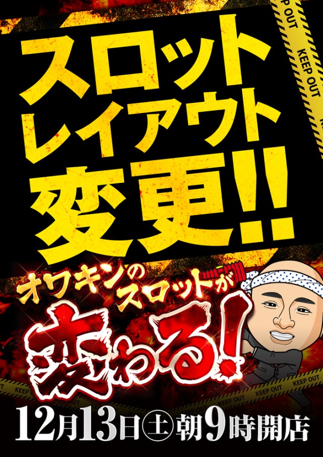 12月13日(土)朝9時開店!スロットレイアウト変更!!!