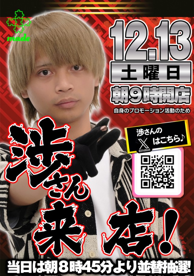 12月8日(月)朝9時開店 新台入替&並替抽選!