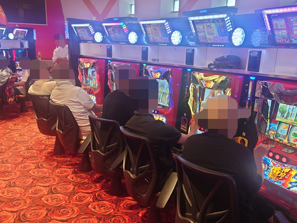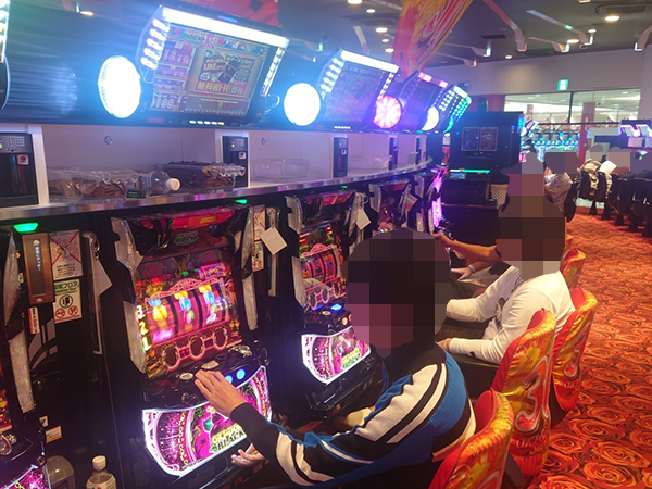 取材時は多くのプレイヤーが来店。パチンコ・パチスロともに、様々な機種が人気を得ていた。