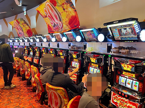 14時ごろの4円パチンコを見てみると「新世紀エヴァンゲリオン〜未来への咆哮〜」や「e Re:ゼロから始める異世界生活 season2」、「Pスーパー海物語 IN 沖縄5」が盛況の様子。機種のポテンシャルを上手く発揮するプレイヤーを多数確認している。