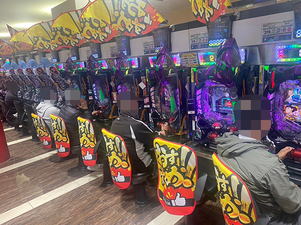 「スマスロ モンスターハンターライズ」や「パチスロ からくりサーカス」、「押忍!番長4」も活況の様子。機種のポテンシャルを最大限に発揮したプレイヤーを目撃している。