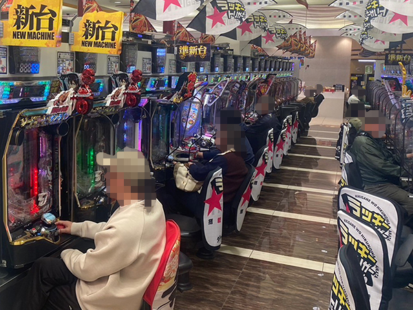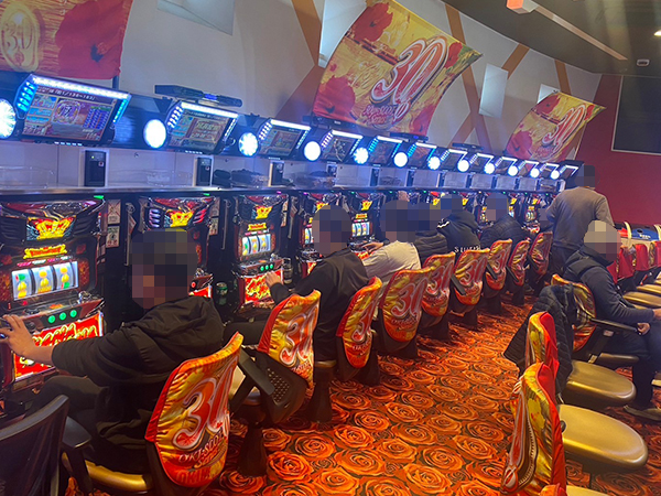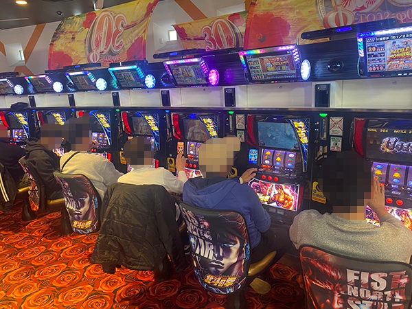 取材時は既に多くのプレイヤーが集結し、パチンコ・パチスロを問わずにぎやかな状況となっていた。