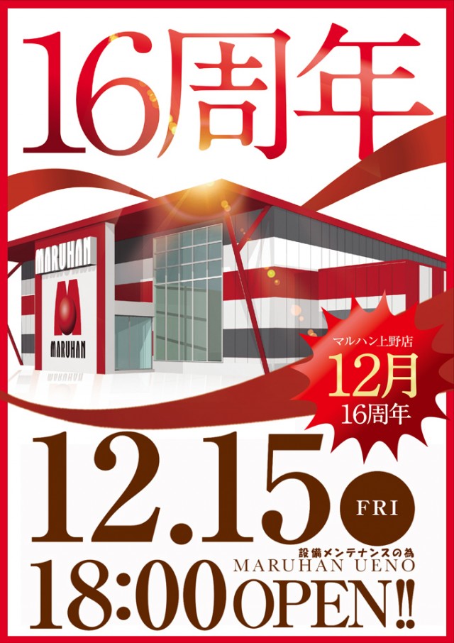 16日(土)昼11時開店 ※設備メンテナンスの為