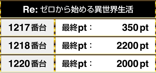2000ptオーバーの台があった『Re:ゼロから始める異世界生活』の3台が連なってプラスptを記録!