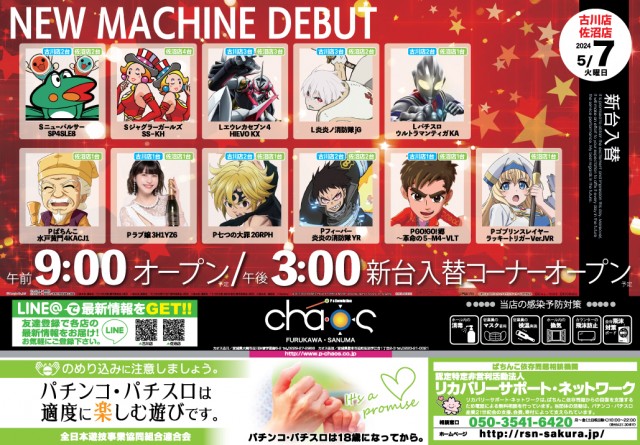パチンコ: [500円/116玉] [200円/186玉] パチスロ: [1000円/47枚]