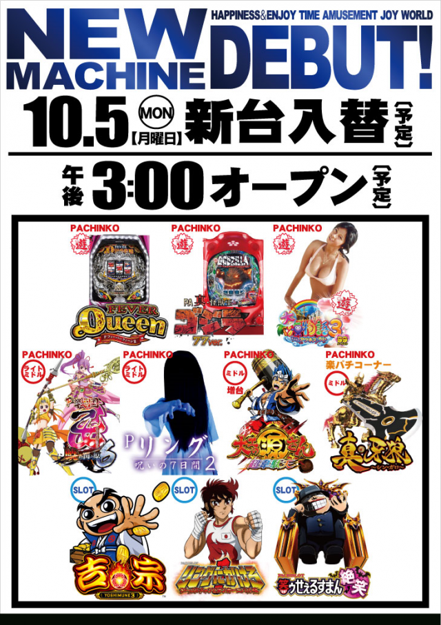 まもなく新台入替オープンとなります。ぜひご来店くださいませ