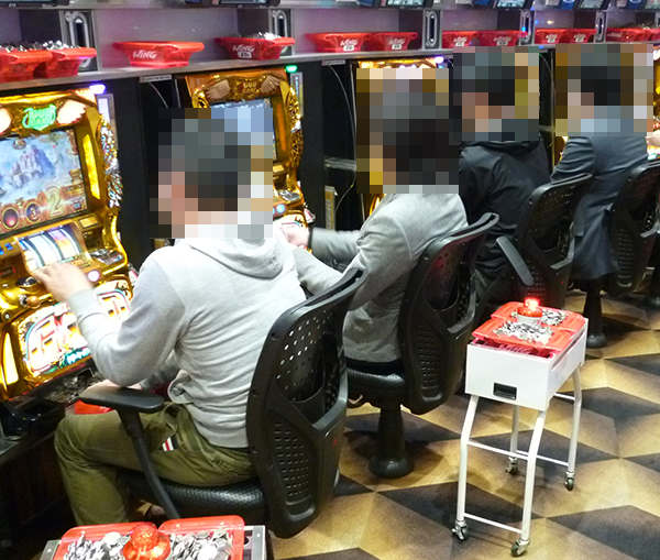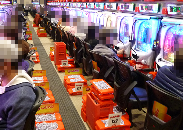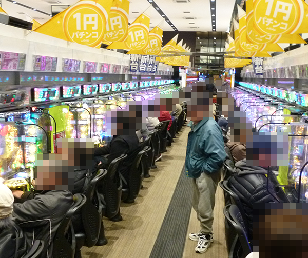 1円パチンコもほぼ満席といった状況。笑顔のプレイヤーたちは、心から遊技を楽しめていたことだろう。