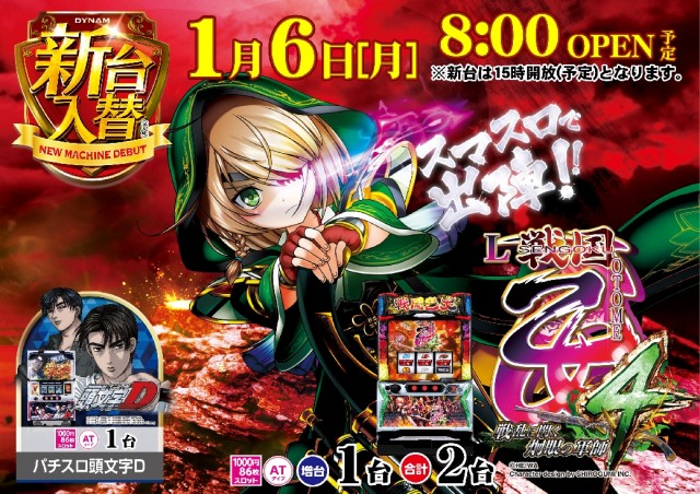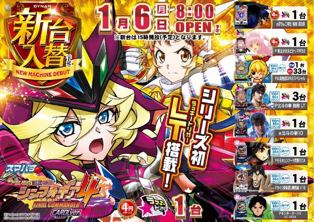 明日1/6(月) 新台入替 8時開店(予定)