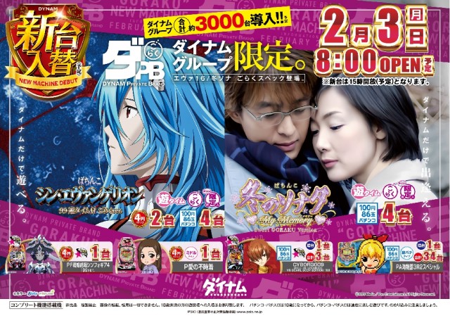 明日2/3(月) 新台入替 8時開店(予定)