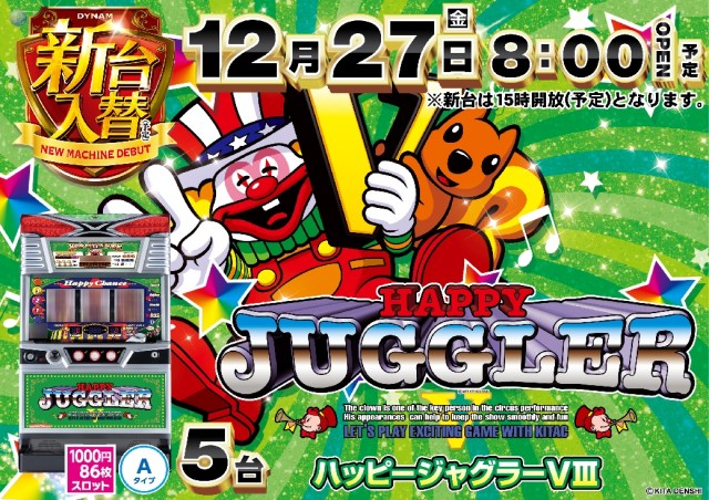明日12/27(金) 新台入替 8時開店(予定)