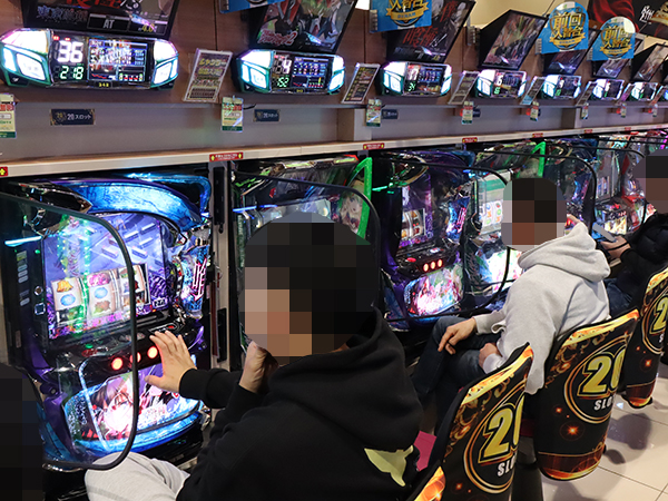 多彩な機種構成で人気の高い1000円/86枚パチスロでは、真剣な表情でレバーを叩くプレイヤーの姿を数多く目撃している。