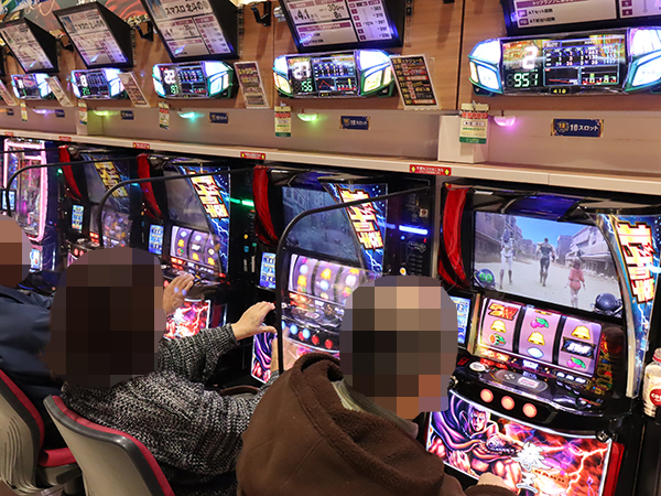 「スマスロ北斗の拳」や「ネオアイムジャグラーEX」などで、機種性能を最大限に発揮するプレイヤーを確認。周囲から注目を集めていた。