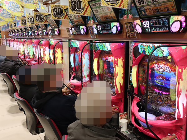 15時ごろの100円/86玉パチンコの様子を見ると、「PA大海物語5 Withアグネス・ラム」や「PA海物語3R2スペシャル」などの甘海シリーズで機種性能を存分に発揮するプレイヤーを目の当たりにしている。