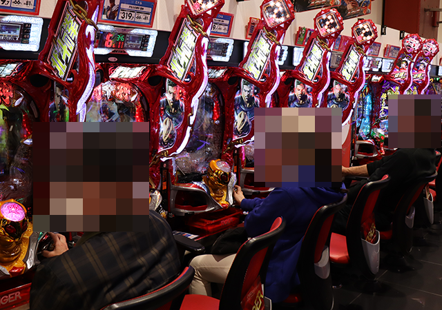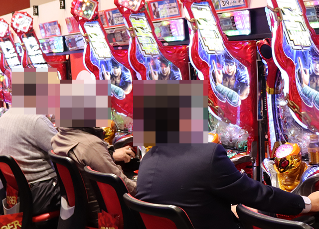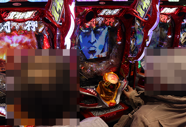 プレイヤーたちがひときわ楽しげであった「P北斗の拳9 闘神」。ひとりひとりが機種のおもしろさをじっくりと堪能していたようだ。