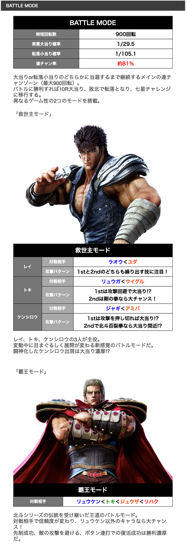 連チャンゾーンの「バトルモード」は継続率約81%で、大当り出玉はすべて約1500個(払い出し)+秘孔チャッカー入賞と破壊力は抜群だ。