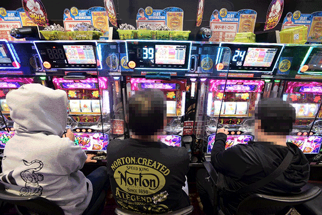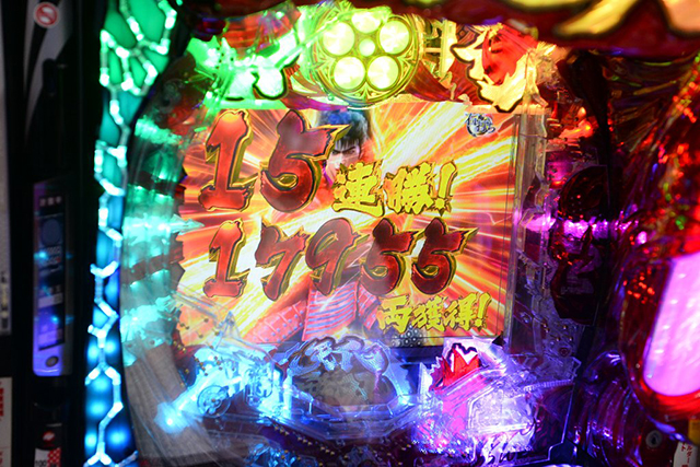 まずはパチンコーナーの大当りラッシュをご覧あれ。