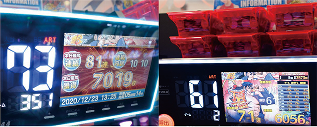 さらにさらに、パチンコに負けじとパチスロコーナーでも値千金の光景が続々出現。