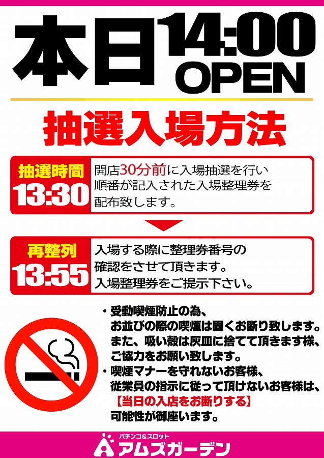 アムズ古川本日14時開店!この後13時30より入場抽選開始!