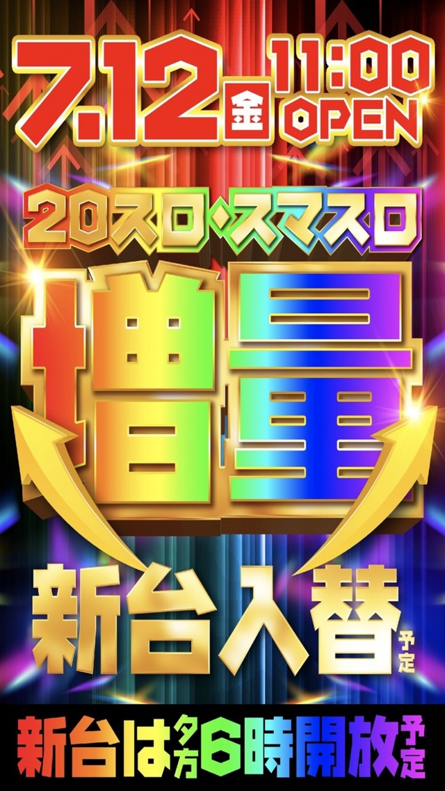 20スロ・スマスロ増台🌈新台入替予定11時開店🌈
