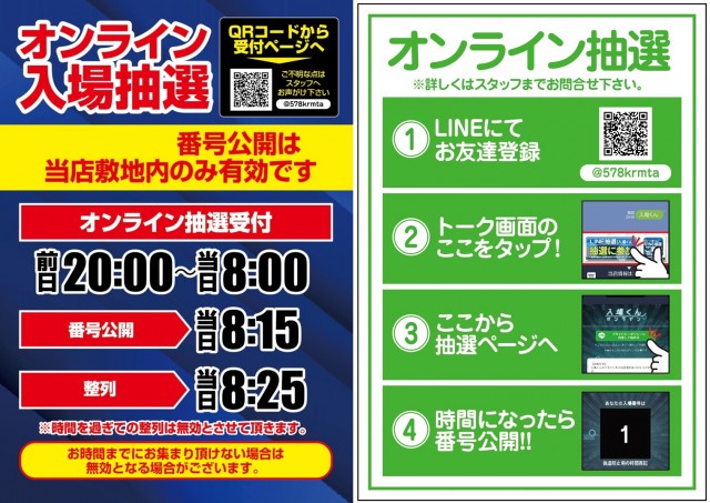 混雑が予想される場合はLINE抽選とさせていただきます。 |
