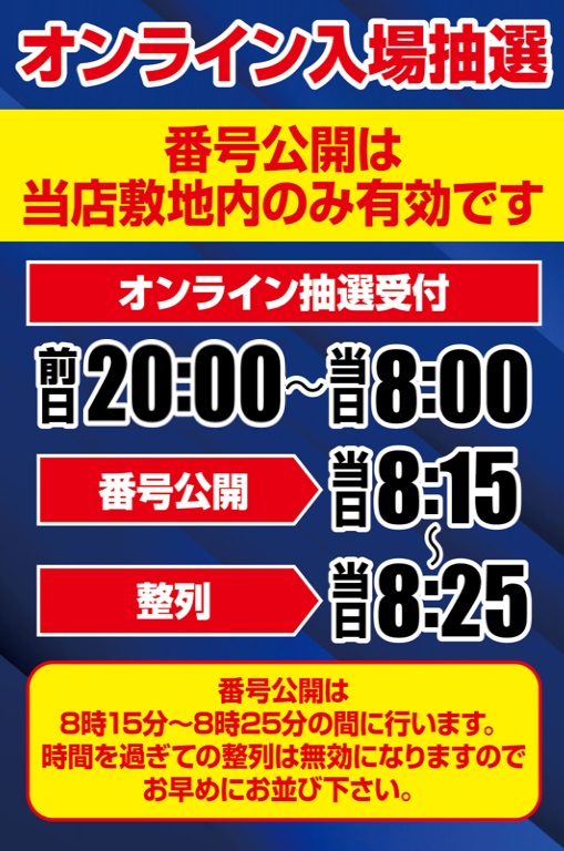 混雑が予想される場合はLINE抽選とさせていただきます。 |