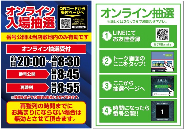混雑が予想される場合はLINE抽選とさせていただきます。 |