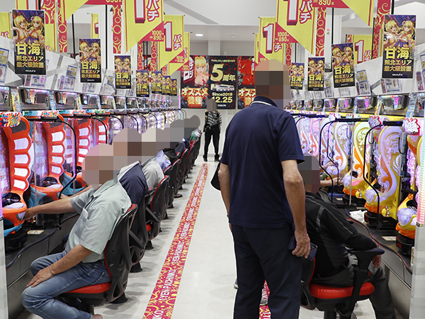 プレイヤーでにぎわう店内を見渡すと、パチンコ・パチスロともに明るい雰囲気が漂っていた。
