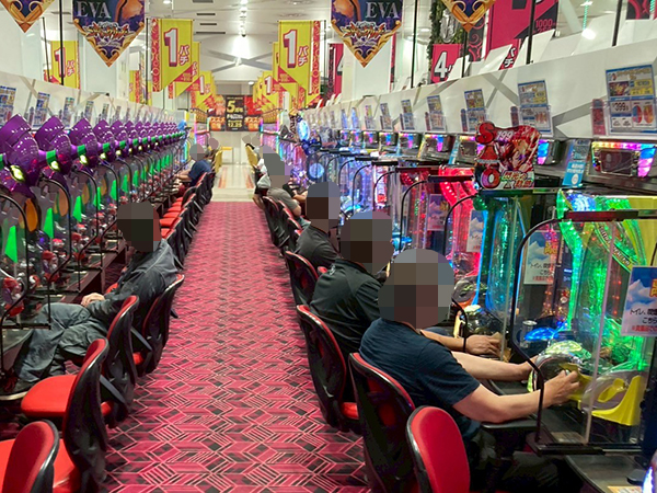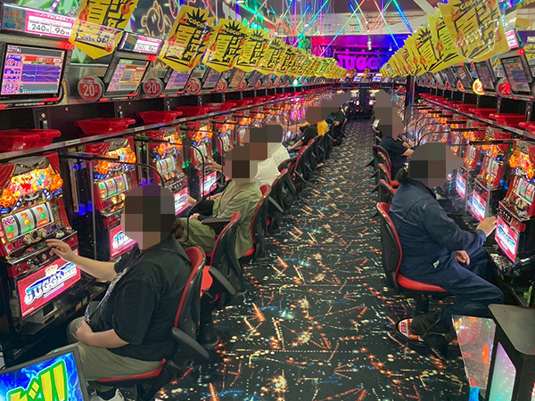 19時ごろの1000円/890玉パチンコでは「P大海物語4スペシャルBLACK」や「PA海物語3R3」などの海物語シリーズが盛況で、機種のポテンシャルをフルに活かすプレイヤーを複数確認している。