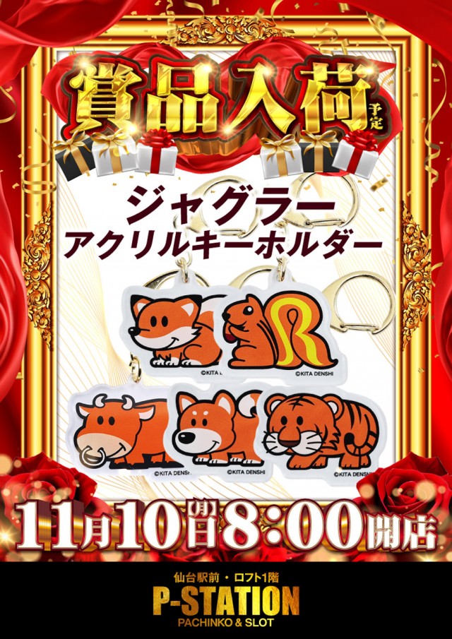明日は「ジャグラーキーホルダー」が賞品入荷予定です♪