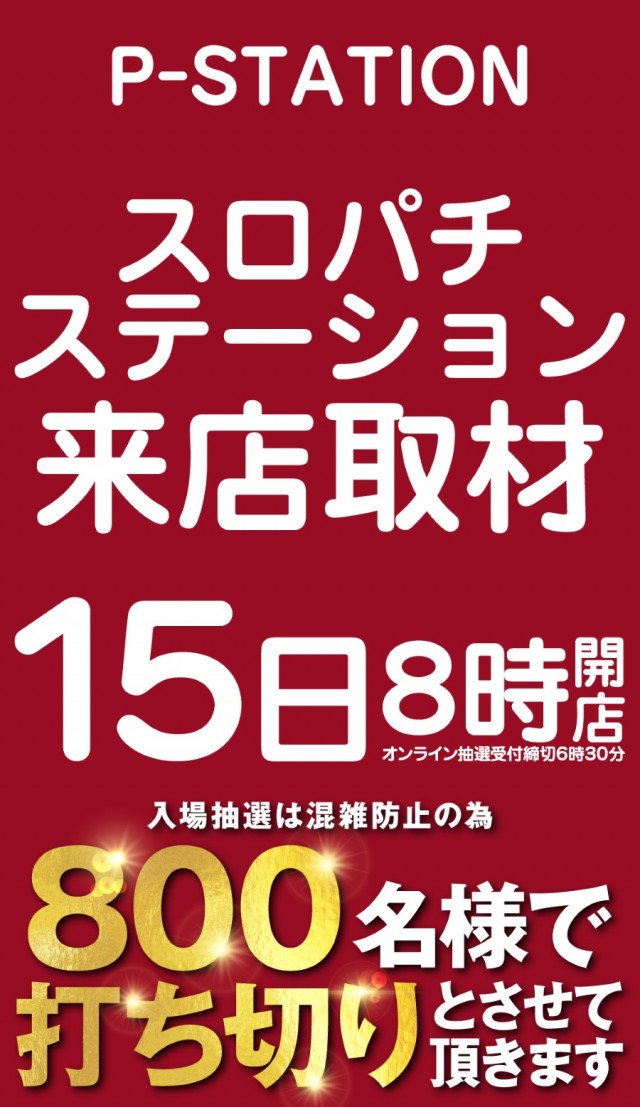 <スロパチステーション来店取材>明日15日 8時OPEN!