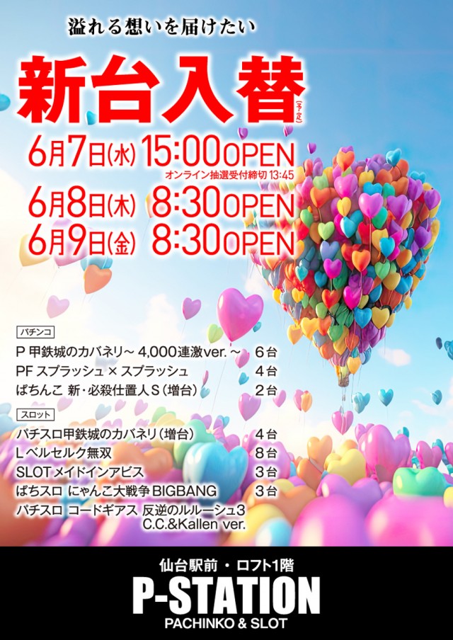★★本日6月7日(水)新台入替15時OPEN予定!★★