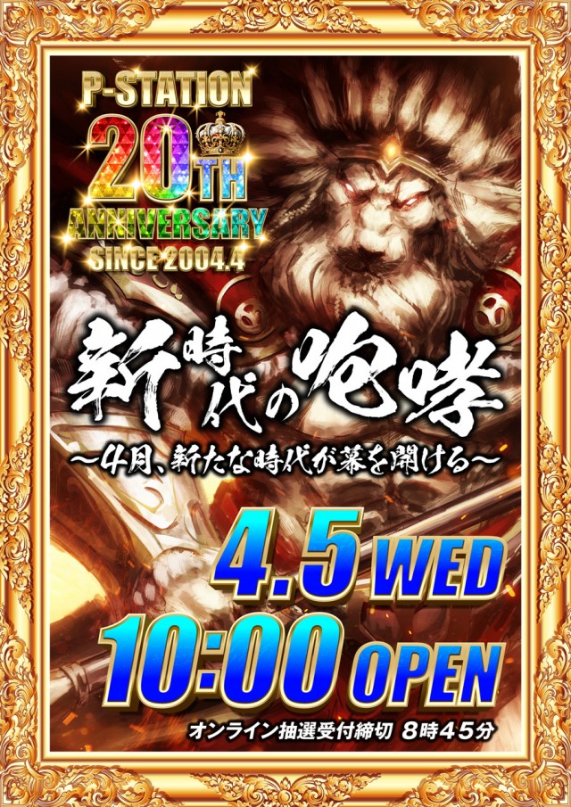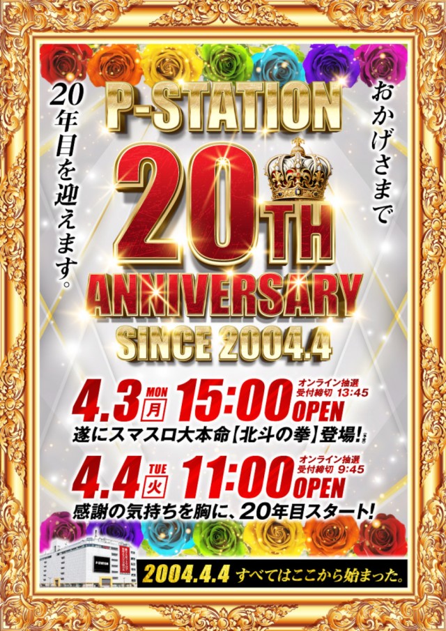 <おかげさまで20年目>4月3日新台入替15時OPEN予定!