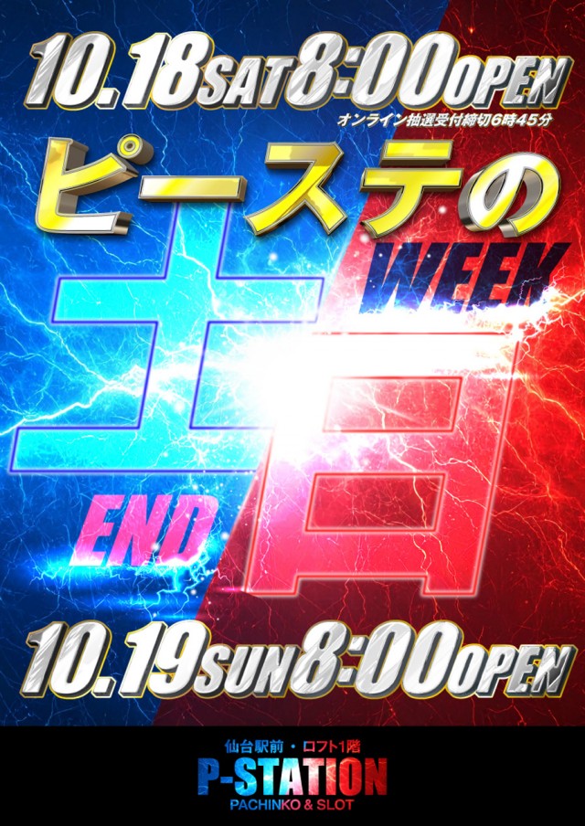 <ピーステの土日>本日10月18日(土)8時OPEN!