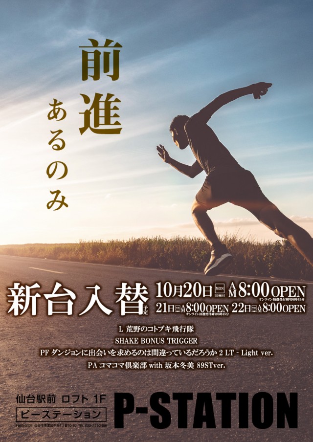 明日10月20日(月)<新台入替>8時OPEN予定!
