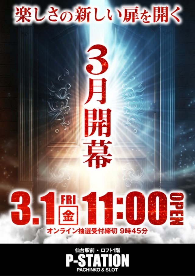 <3/8 新台入替> 明日3月9日 8時30分OPEN!