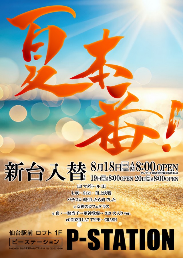 <8月18日 新台入替> 明日8月20日 8時OPEN!