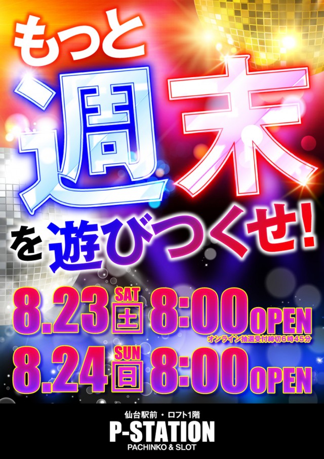もっと【週末】を遊びつくせ!明日8月24日 8時OPEN!