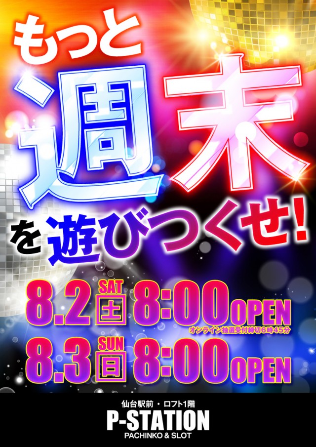 もっと【週末】を遊びつくせ!明日8月3日 8時OPEN!