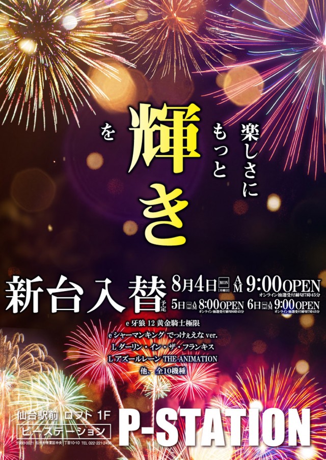 明日8月4日<新台入替>9時OPEN予定!