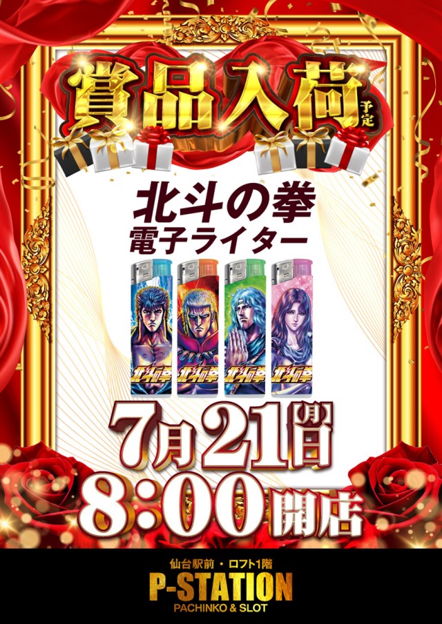 明日は「北斗の拳」電子ライターが賞品入荷予定です♪